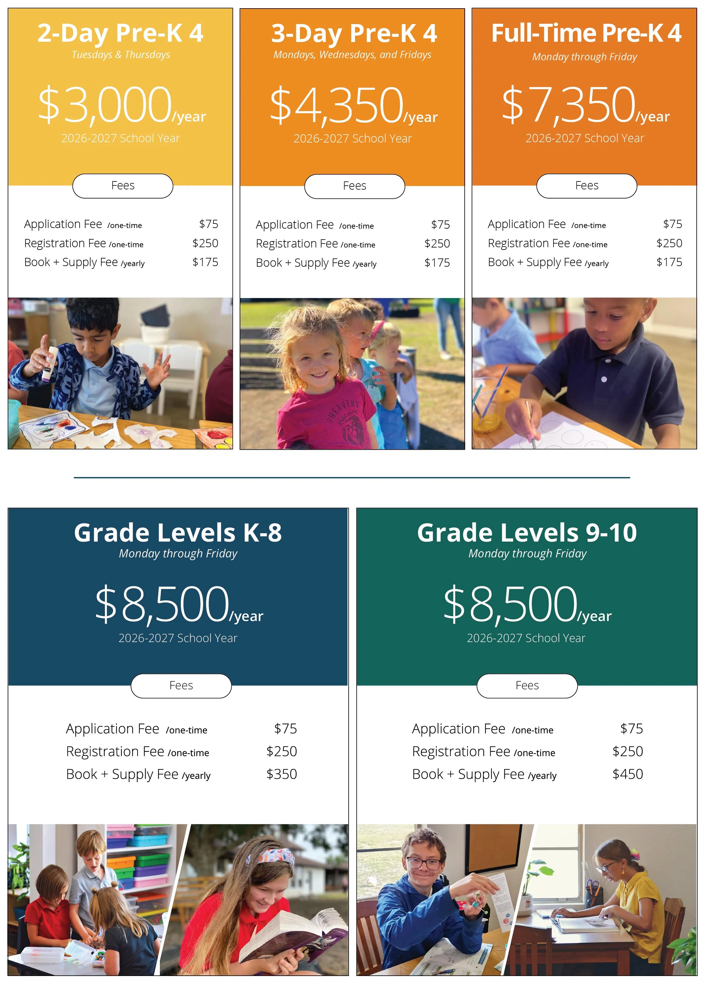 After a review, each family will receive an acceptance, denial, or waitlist letter. Information on school supplies and calendars will be sent at this time. If accepted, the registration fee will be due within one week of notification, or the student’s spot will no longer be held.